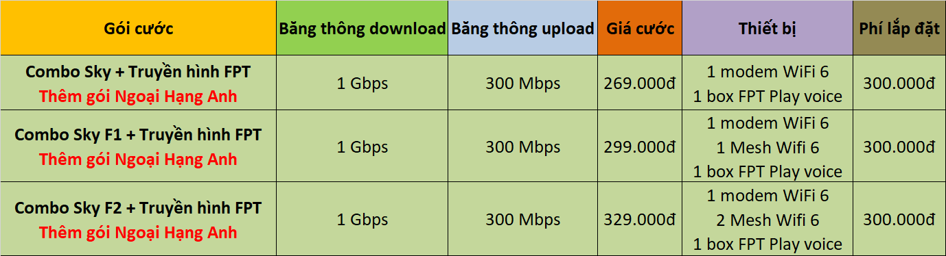 Khi lắp đặt mạng FPT gói này, khách hàng được:
