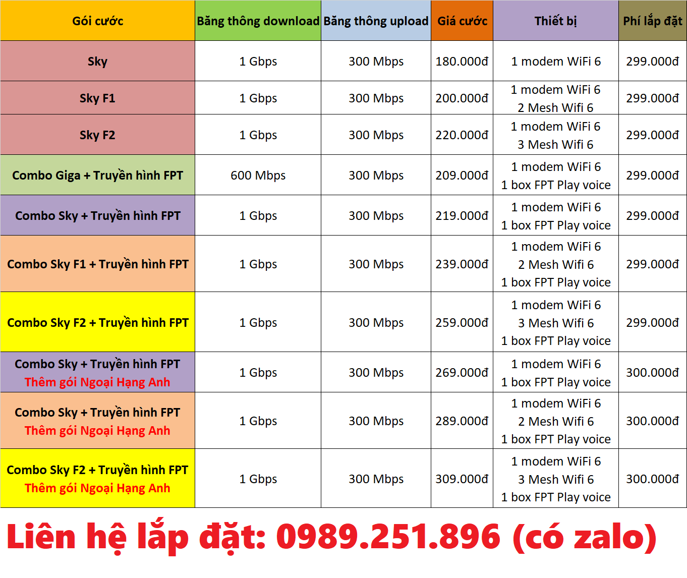 Combo Sky1GbpsInternet + Truyền hình FPT219.000đ/tháng