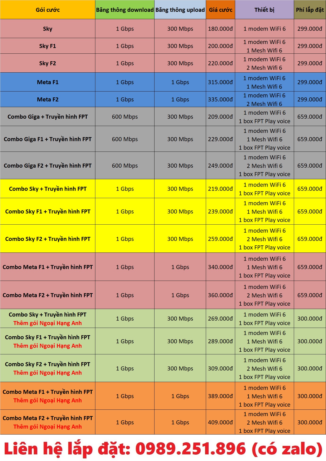 | Gia đình đông người | Combo Sky | 1Gbps | 219k |