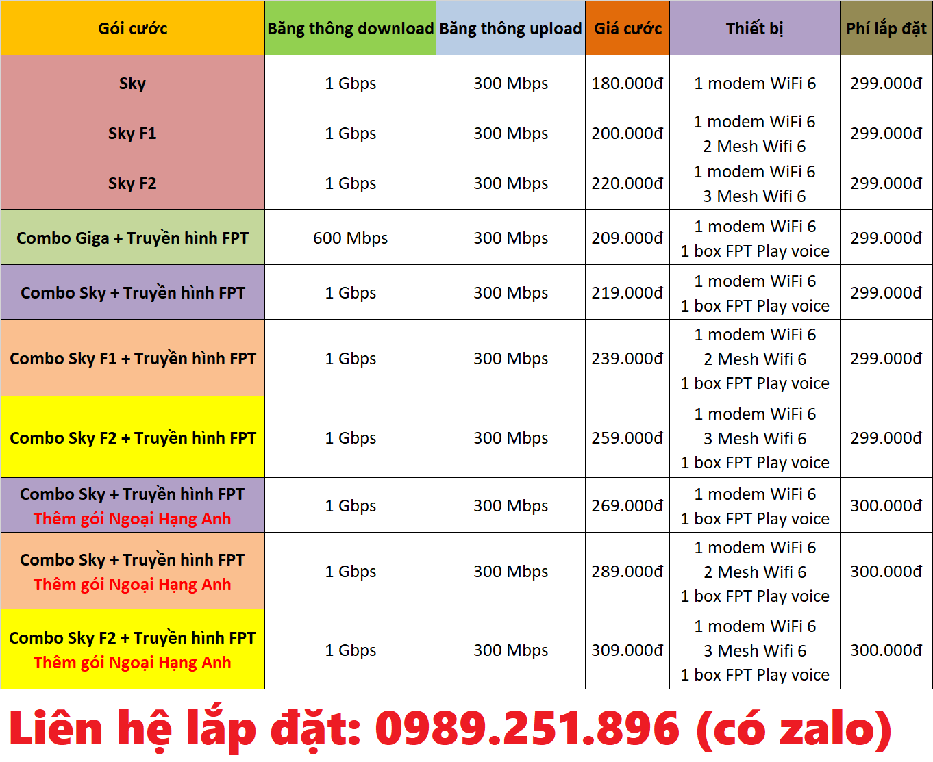 Bảng gói cước lắp mạng FPT đường Phụng Pháp theo đối tượng khách hàng