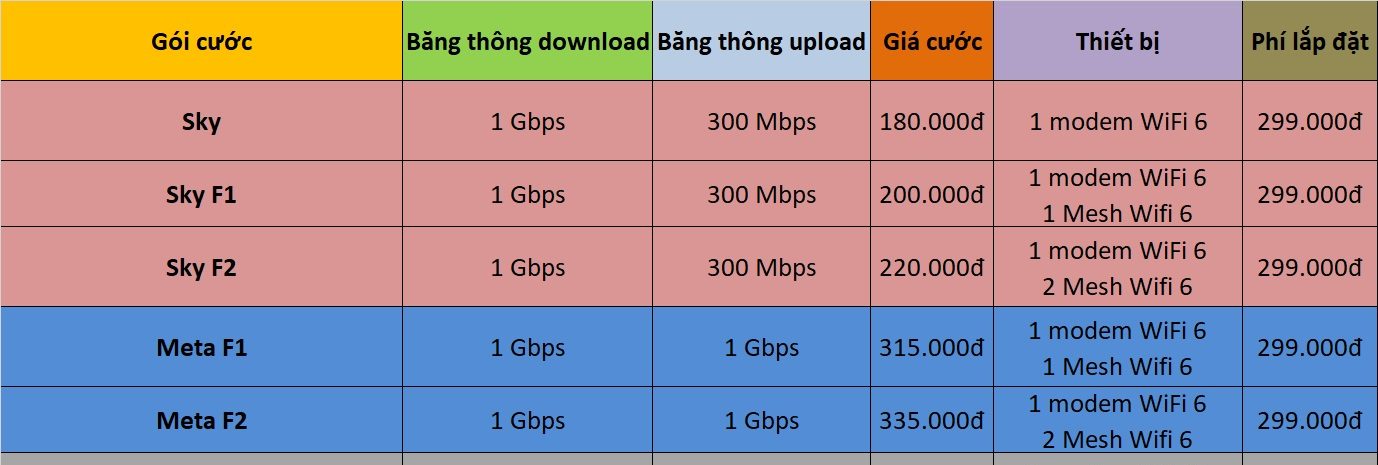 Gói Wifi 6 Internet Tốc Độ Cao 1024Mbps – giá chỉ từ: 180.000vnđ/tháng.